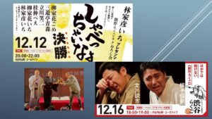 昼の部 「三方ヶ原軍記」田辺凌々~田辺一記~田辺いちか/「生か死か」田辺鶴遊/「瞼の母」田ノ中星之助/中入り/「東京オリンピック」田辺銀冶/「曲馬団の女」田辺一凛/「名月若松城」宝井琴梅