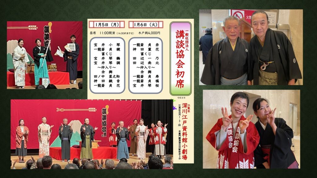 講談協会初席 宝井琴調「浜野矩随」神田織音「横川勘平」一龍斎貞寿「沢村淀五郎」宝井琴桜「茶碗屋敷由来」