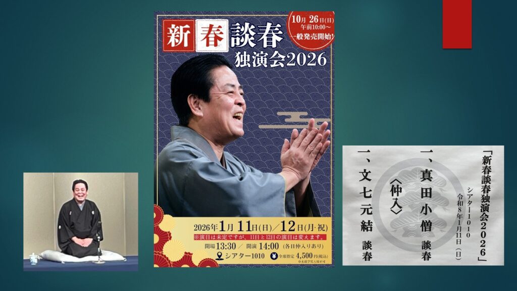 新春談春独演会に行きました。立川談春師匠が「真田小僧」と「文七元結」の二席。