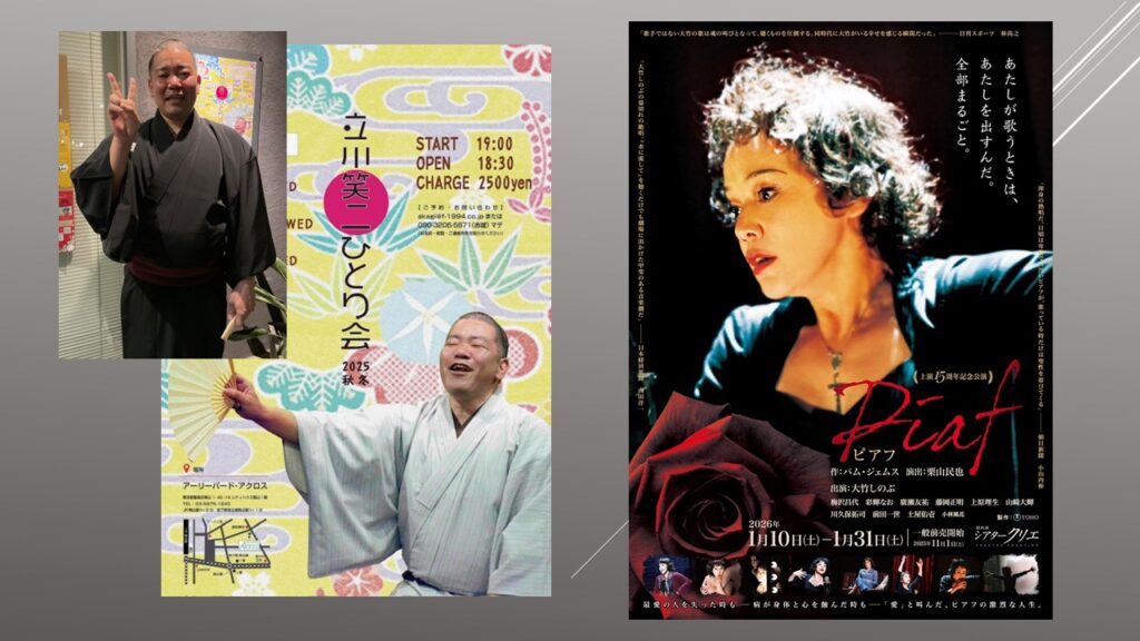 音楽劇「ピアフ」、そして立川笑二ひとり会「御神酒徳利」