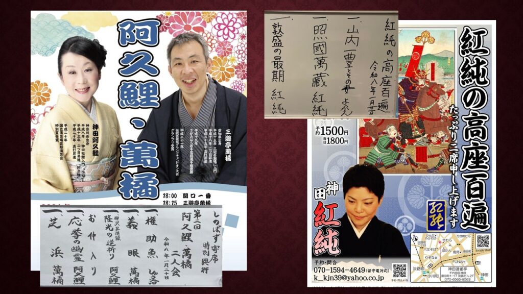 阿久鯉・萬橘二人会 神田阿久鯉「柳沢昇進録 隆光の逆祈り」三遊亭萬橘「芝浜」、そして紅純の高座百遍 神田紅純「照國萬蔵」