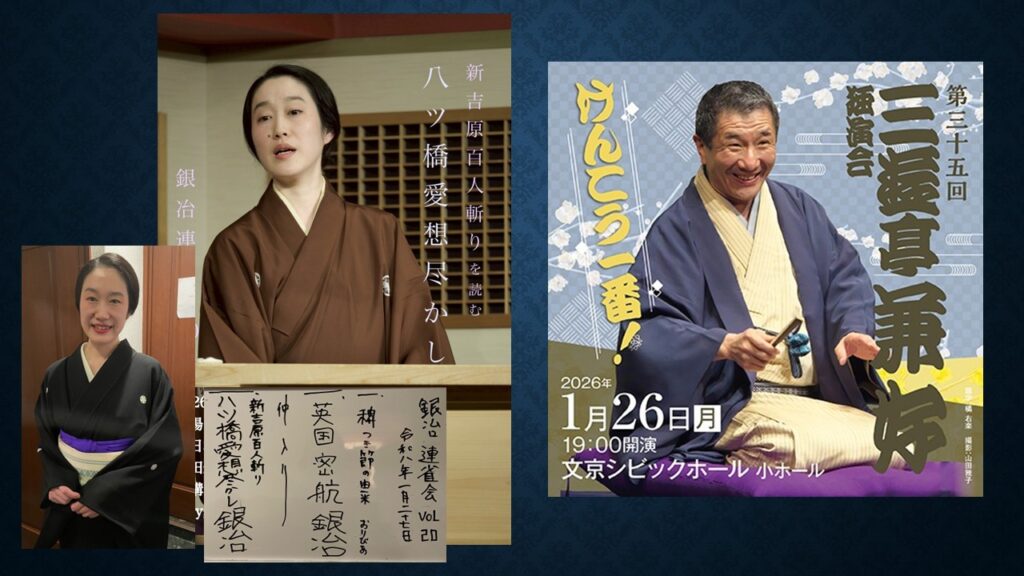 「銀冶連雀会~新吉原百人斬りを読む」に行きました。「英国密航」と「新吉原百人斬り 八ツ橋愛想尽かし」。前講は神田おりびあさんで「稗搗節の由来」だった。