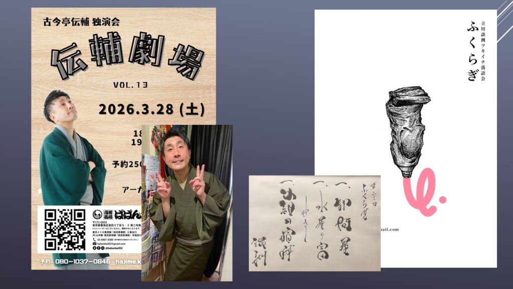 立川談洲ツキイチ落語会「卸問屋」、そして伝輔劇場 古今亭伝輔「子は鎹」