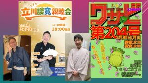 喬太郎師匠の「銭湯の節」。めぐみがおばあちゃんに浪花節を聴かせてあげたいと相談したおじさんの応対が魅力的だ。めぐみが落研出身で、得意は「芝浜」だと聞いて(めぐみの稚拙な「芝浜」は論外として)、おじさんが「芝浜」の夫婦のやりとりを浪花節風に演じてみせるところ。啖呵(台詞部分)も節に引っ張られるという説明が頷ける。その上で、きょうは「おじさんも『芝浜』を2分で出来るんだ」と言って、♬ブルーライトヨコハマの替え歌で「50両と芝浜」の粗筋を歌い切った。さすが喬太郎師匠!と舌を巻いた。