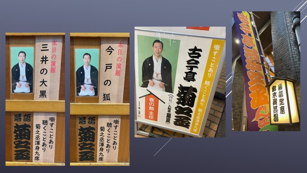 上野鈴本演芸場十月下席三日目夜の部に行きました。今席は古今亭菊之丞師匠が主任を勤め、「噺すことあり 聴くことあり 菊之丞渾身九席」と題したネタ出し興行だ。きょうは「三井の大黒」だった。