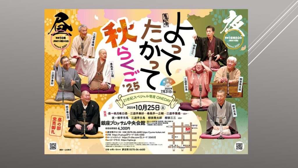 喬太郎師匠。日本経済をガタガタにするためにアメリカ本土から派遣されたメアリーは、日本人の海老好きを利用して金魚売りをロブスター売りに改造した。「あなたたちは私たちの陰謀を知ってしまいましたね!」「トランプがそんなことを?」「いいえ、私たちはNPO法人です」。「この計画を他に知らせると、この早朝出勤のソープ嬢のパンツはありませんよ!」。ナンセンスなんだけど、理屈が通っている展開がこの新作落語の真骨頂だ。